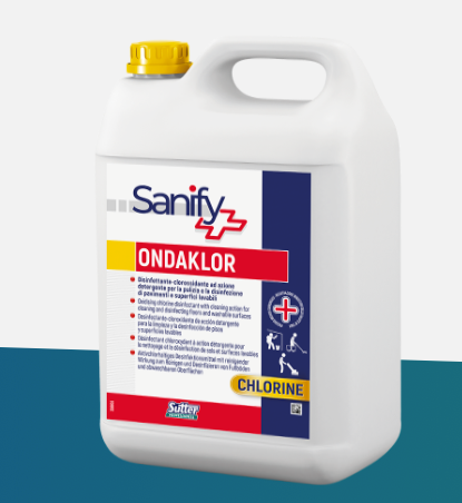 Detergente disinfettante, clorossidante ad azione detergente per la pulizia di pavimenti e superfici lavabili Sutter Ondaklor - Tanica da 5kg